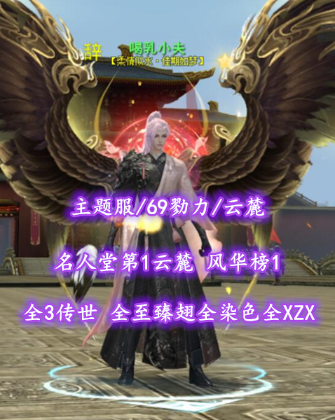 【主题服/69勠力/名人堂云麓】名人堂第1云麓+风华榜1!全3传世+全至臻翅全染色+全XZX+全绝版时装!全珍品退魔+全16技能威力——喝乳小夫
