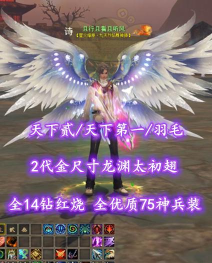 【天下贰/天下第一/羽毛(小攻重)】全14钻红烧!2代金尺寸龙渊太初翅!全优质75神兵装——且行且看且听风