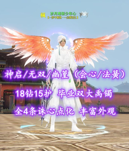 【神启/无双/幽篁(会心/法簧)】18钻15护!毕业双大禹镯!全4条诛心点化!丰富外观,超值之选——岁月难斩少年心
