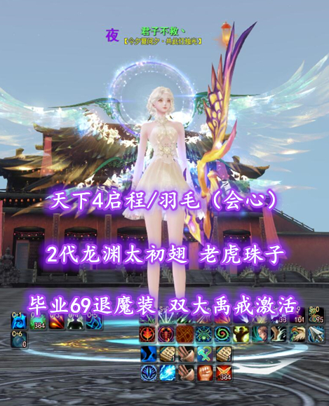 【天下4启程/羽毛(会心)】2代龙渊太初翅!老虎珠子!毕业69退魔装!双大禹戒激活——君子不救丶