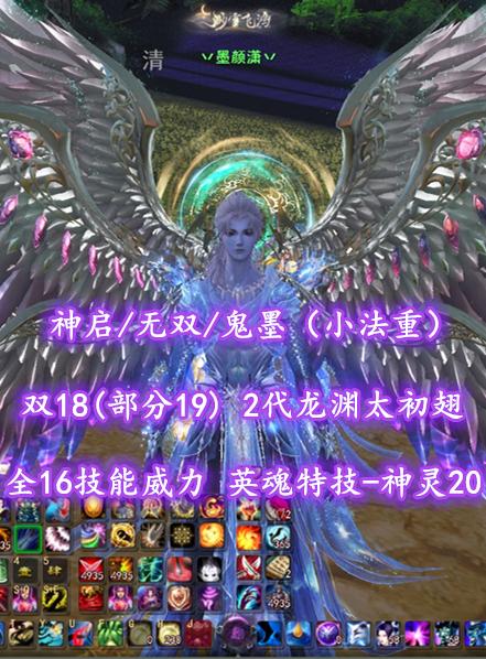 【神启/无双/鬼墨(小法重)】双18(部分19)!2代龙渊太初翅!全16技能威力!3神临+2代土豪马等豪华外观——丷墨颜潇丷