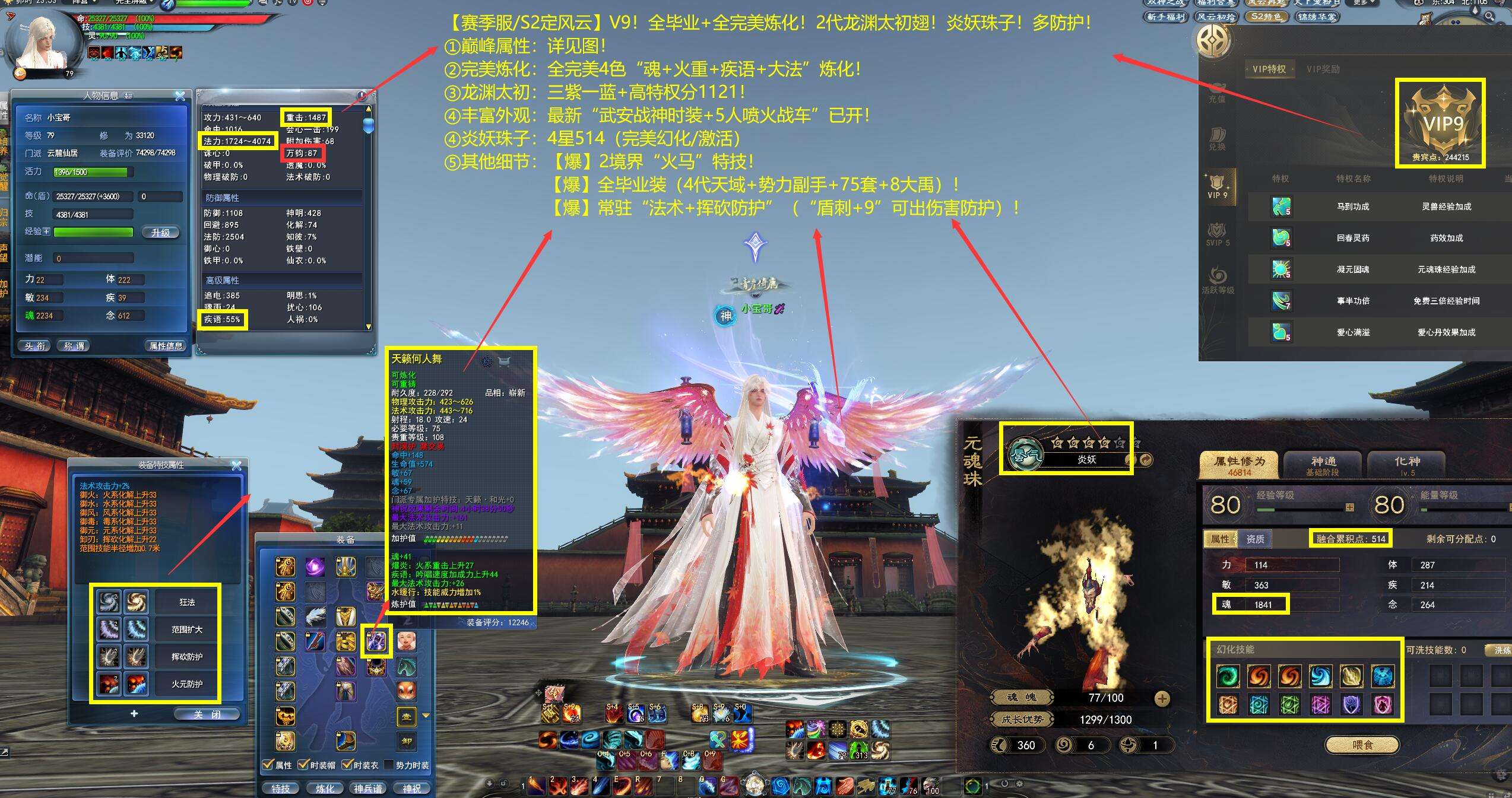 【赛季服/S2定风云/云麓】V9!全毕业+全完美炼化!2代龙渊太初翅!炎妖珠子!多防护——小宝哥