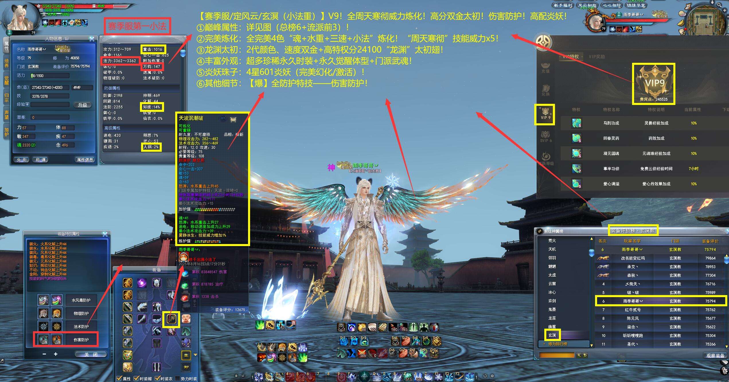 【赛季服/定风云/玄溟(小法重)】V9!全周天寒彻威力炼化!高分双金太初!伤害防护!高配炎妖——纵酒痴乀