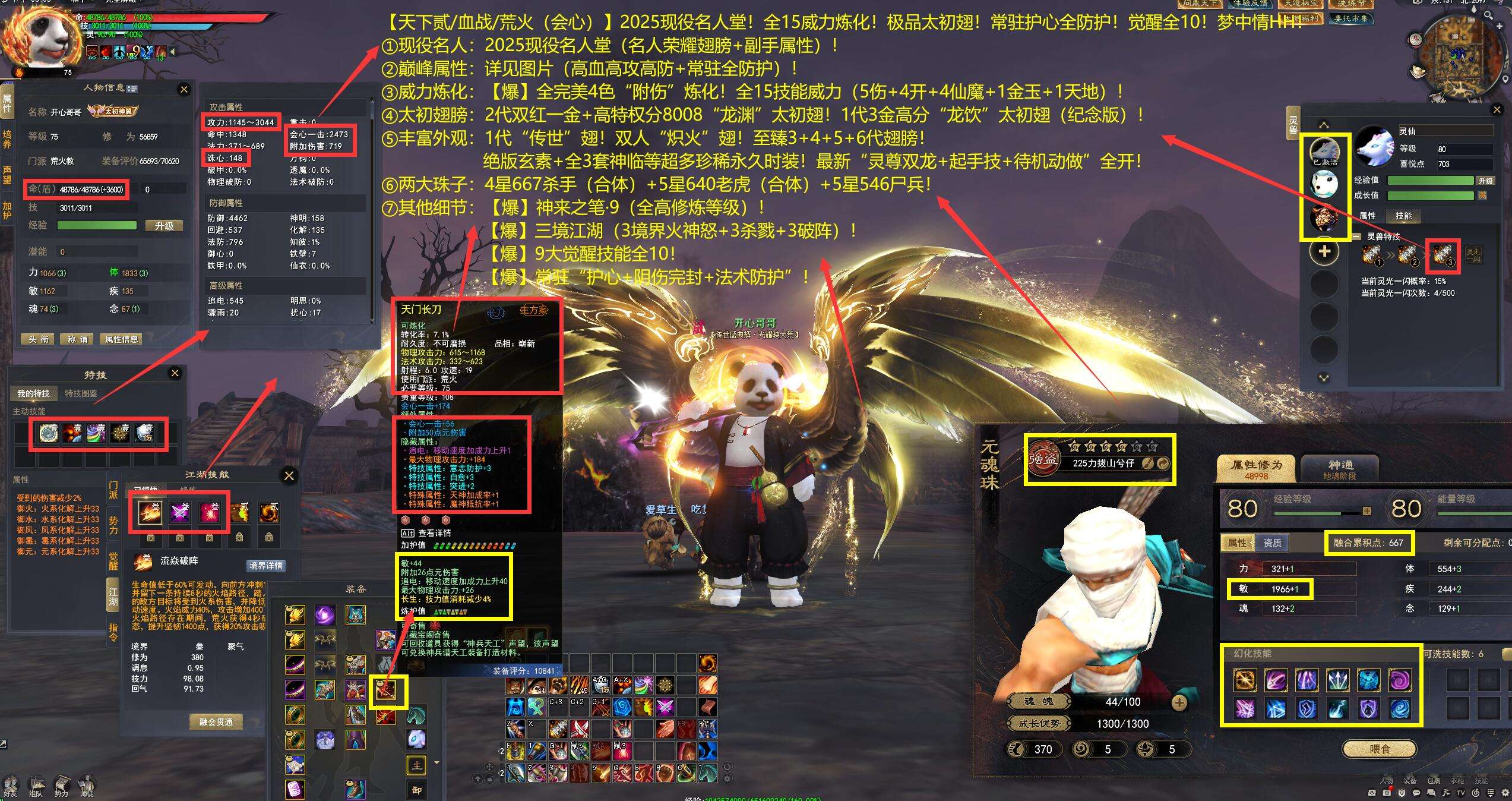 【天下贰/血战/荒火(会心)】2025现役名人堂!全15威力炼化!极品太初翅!常驻护心全防护!觉醒全10!梦中情HH——开心哥哥