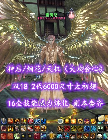 【神启/烟花/天机(大攻会心)】双18!2代6000尺寸太初翅!16全技能威力炼化!副本套齐!完封护心多特技——靈魔怒