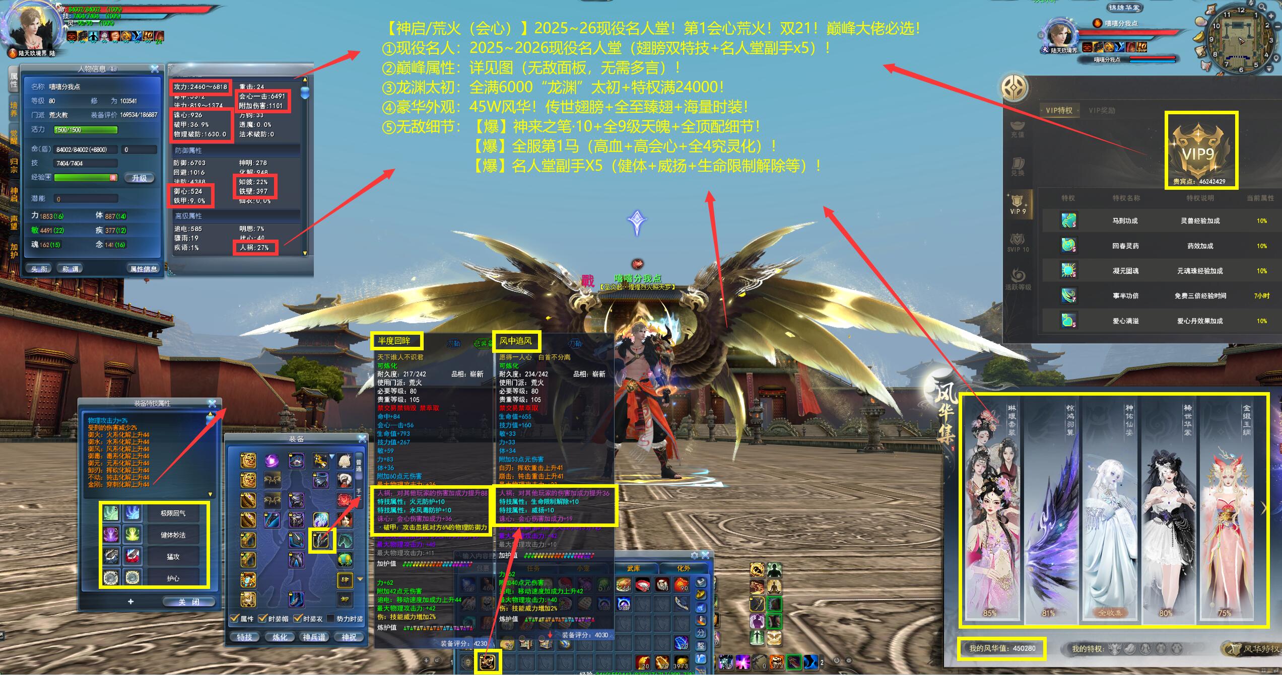 亮点: ①现役名人:2025~2026现役名人堂(翅膀双特技+名人堂副手x5)! ②巅峰属性:详见图(无敌面板,无需多言)! ③龙渊太初:全满6000“龙渊”太初+特权满24000! ④豪华外观:45W风华!传世翅膀+全至臻翅+海量时装! ⑤无敌细节:【爆】神来之笔·10+全9级天魄+全顶配细节!【爆】全服第1马(高血+高会心+全4究灵化)!【爆】名人堂副手X5(健体+威扬+生命限制解除等)!