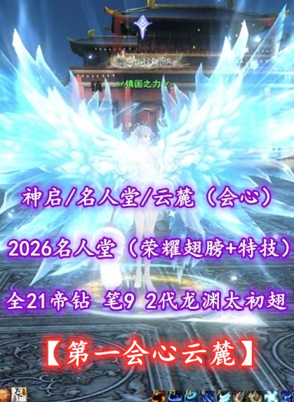 【神启/名人堂/云麓(会心)】2026现役名人堂第1会心云麓(荣耀翅膀+特技)!加护全21帝钻!笔9!2代高分龙渊太初翅+传世翅+土豪马+绝版豪华外观——鹿予可梵