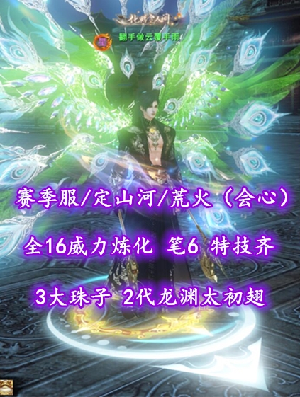 【赛季服/定山河/荒火(会心)】全16威力炼化!笔6!完封+伤害防护!3大珠子!2代龙渊太初翅+神临时装+至臻翅等外观——翻手做云覆手雨