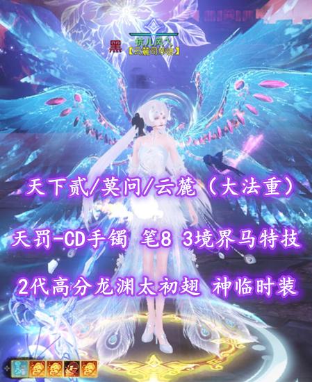 【天下贰/莫问/云麓(大法重)】天罚-CD手镯!笔8!3境界马特技!5大合体!2代高分龙渊太初翅+神临时装+多外观——杭儿风乀