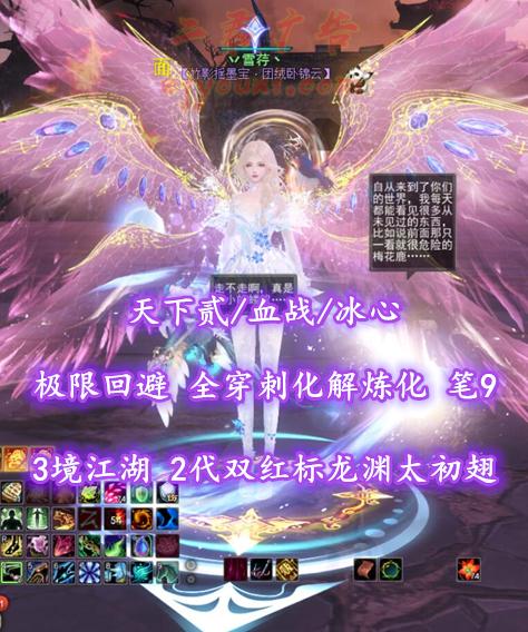 【天下贰/血战/冰心】极限回避!全穿刺化解炼化!笔9!3境江湖!2代双红标龙渊太初翅+多至臻翅+顶奢耀世神临时装等——丷雪荇丶