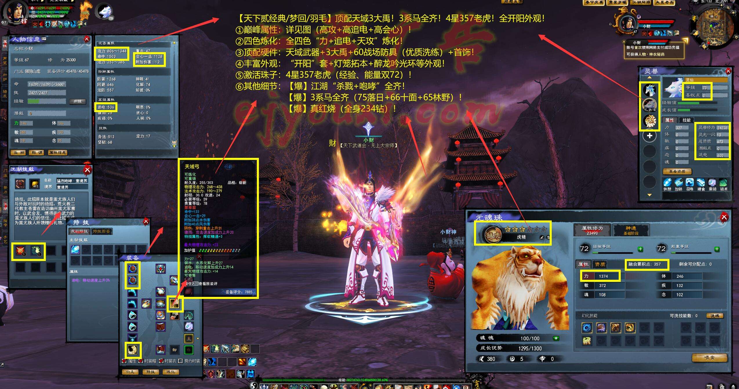 【天下贰经典/梦回/羽毛】顶配天域3大禹!3系马全齐!4星357老虎!全开阳外观——小财