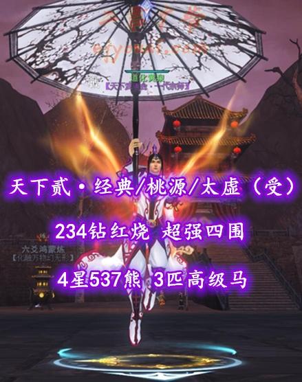【天下贰·经典/桃源/太虚(受)】234钻红烧!超强四围!4星537熊!3匹高级马——道化黄泉