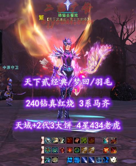 【天下贰经典/梦回/羽毛】240钻真红烧!天域+2代3大饼!4星434老虎!3系马齐——骑猫去看戏