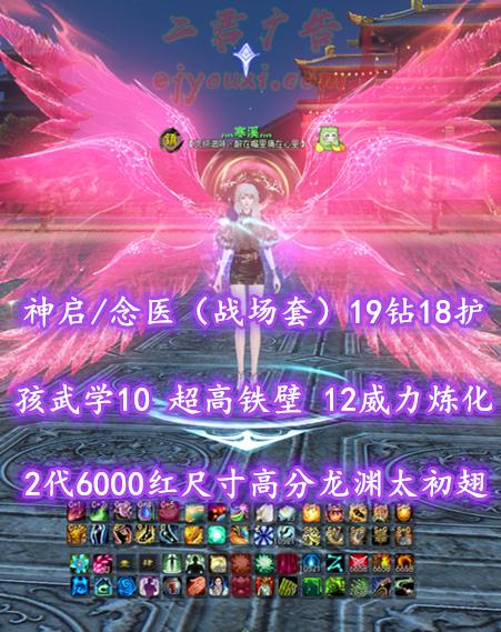 【神启/念医(战场套)】19钻18护!孩武学10!超高铁壁!12威力炼化!2代6000红尺寸高分“龙渊”太初翅!+全翅全箱全武魂等外观——灬寒溪灬